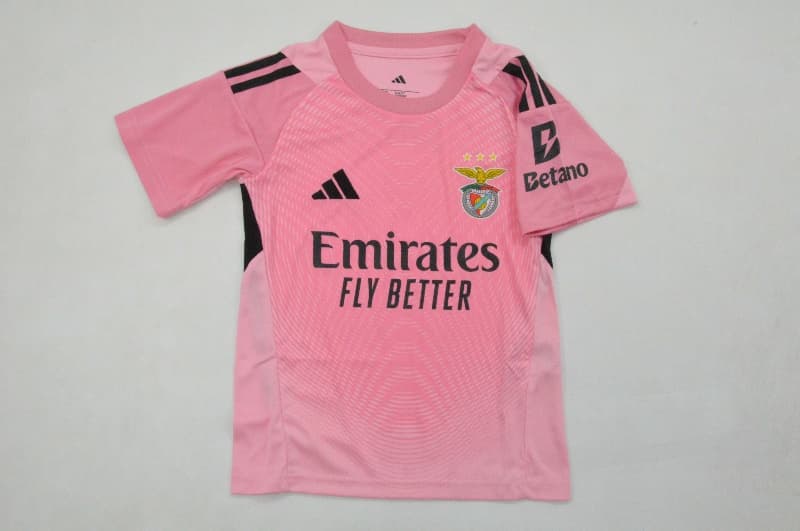 :: Kids Benfica 25/26 Goalkeeper Pink Soccer Jersey And Shorts