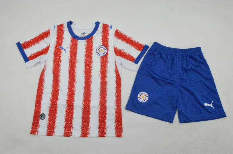 Kids Paraguay 2026 Home Soccer Jersey And Shorts